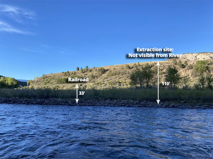 The hills in the two images immediately below, will not be disburbed. Mining will take place on the other side of these hills. The extraction site is 1/8th of a mile from the river basin and 110 feet above the river. Mining will not be visible from the river and these hills will remain in tact.